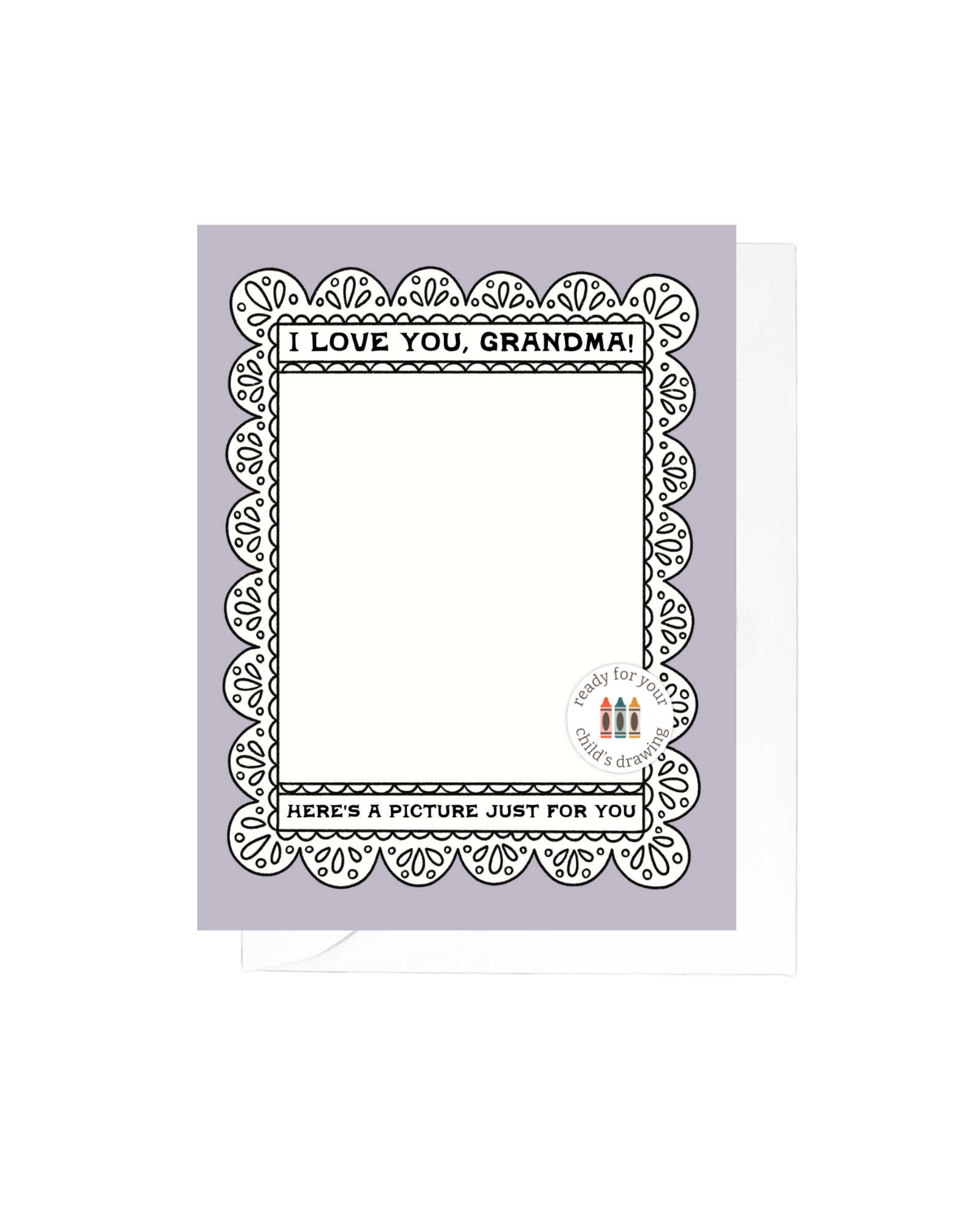 The perfect card to give grandma! There’s space on the front for a little artist to draw a picture for grandma, and a spot on the back so they can sign their masterpiece. Great for Mother’s Day, grandma’s birthday, or even just because!
