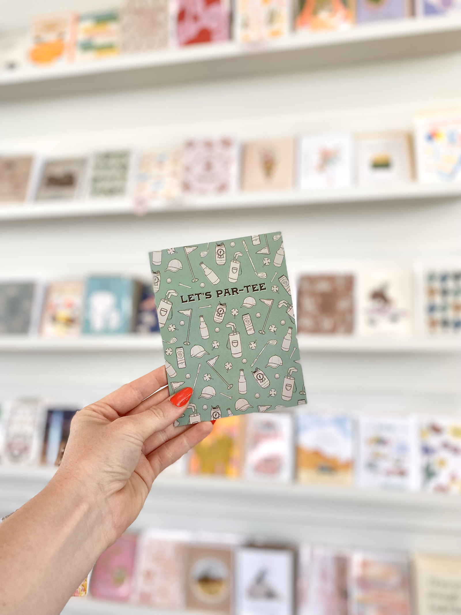 “Let’s Par-tee!”  The perfect card for celebrating your favorite golfer!  DETAILS Size: A2 (4.25in x 5.5in) Includes envelope Blank inside Designed in Tucson Arizona  About the Maker  Creative Kind is an Arizona-based, woman-owned shop that carries goods from small businesses and independent makers, many of whom are lo